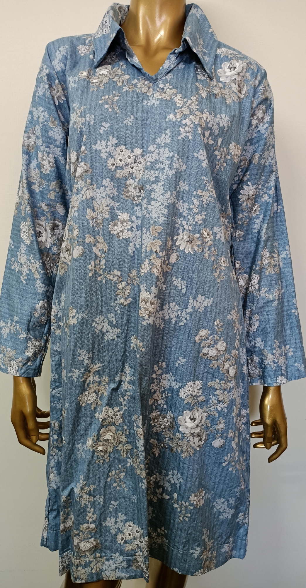 White Flowers Blue Dress